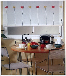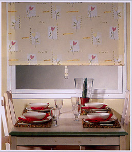 Например шторы из ткани Gerbera великолепно сочетаются с обычными шторами и очень хорошо подходят для кухни.