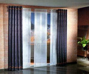 Японские шторы обычно используятся с целью закрытия широких оконных проемов и также иногда играют роль своеобразной декоративной перегородки в современных квартирах. Технология японских штор предполагает использование практически любых типов тканей, что позволяет создать интерьер помещения в едином цветовом решении.